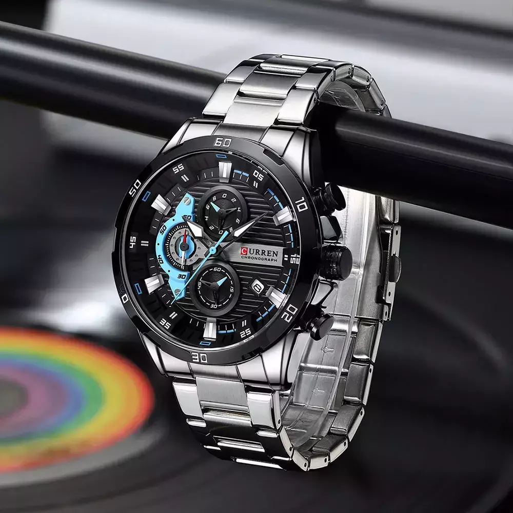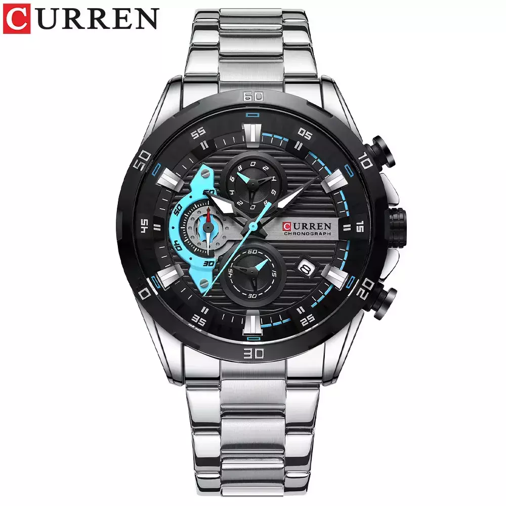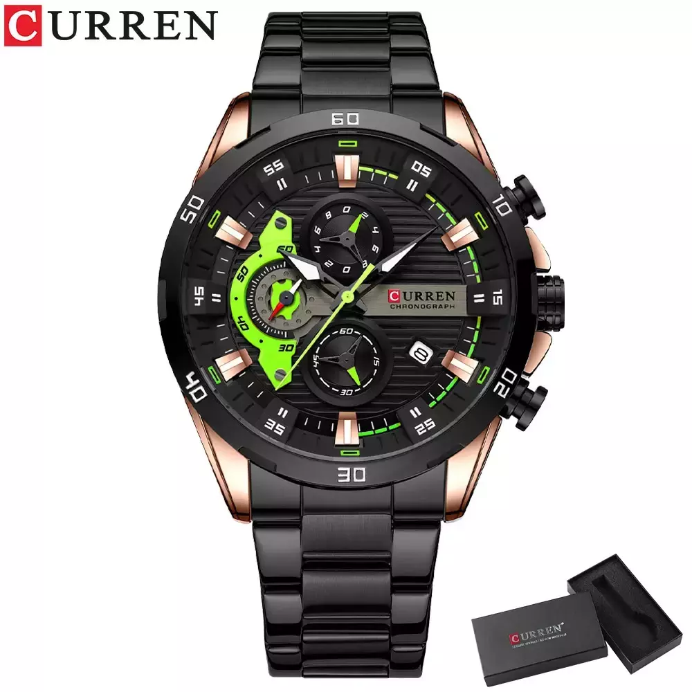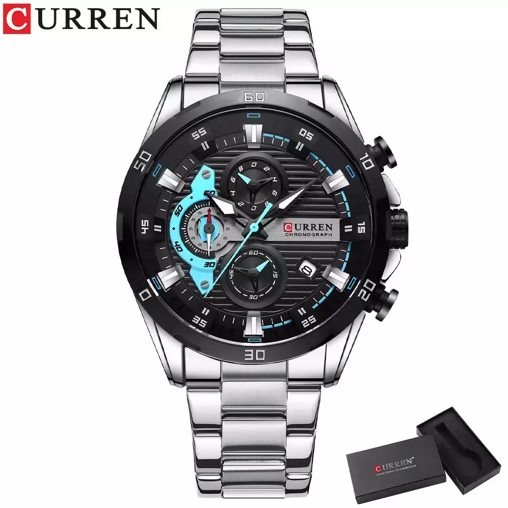 CURREN Relógios de aço inoxidável para homens, mostrador luminoso de moda criativa com cronógrafo, relógios de pulso casuais masculinos.