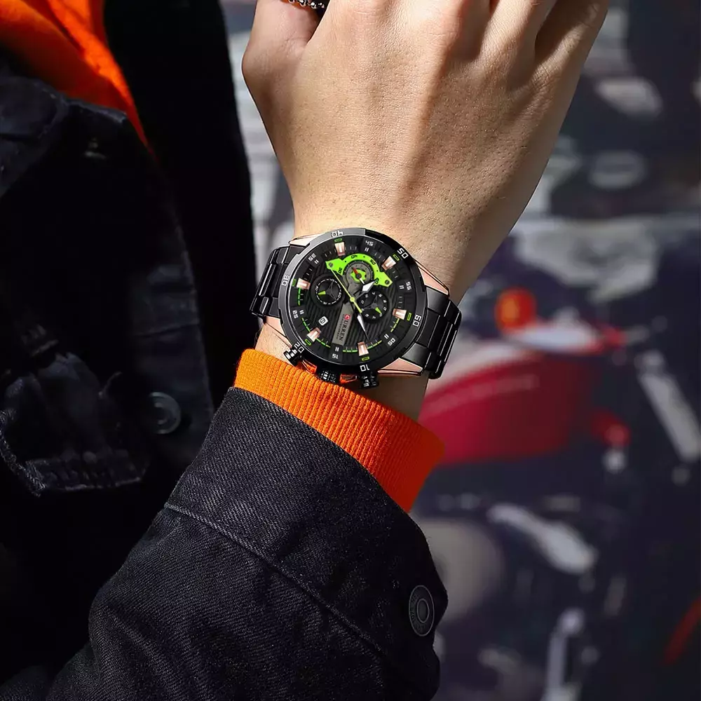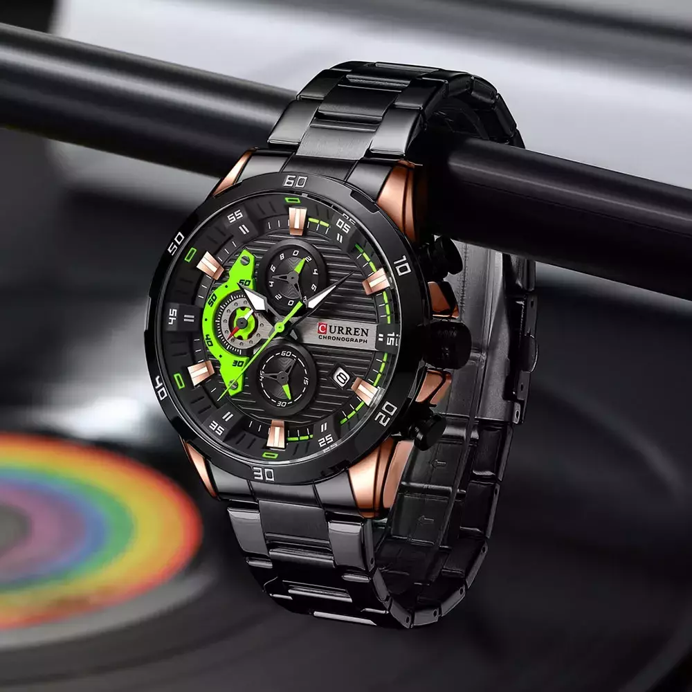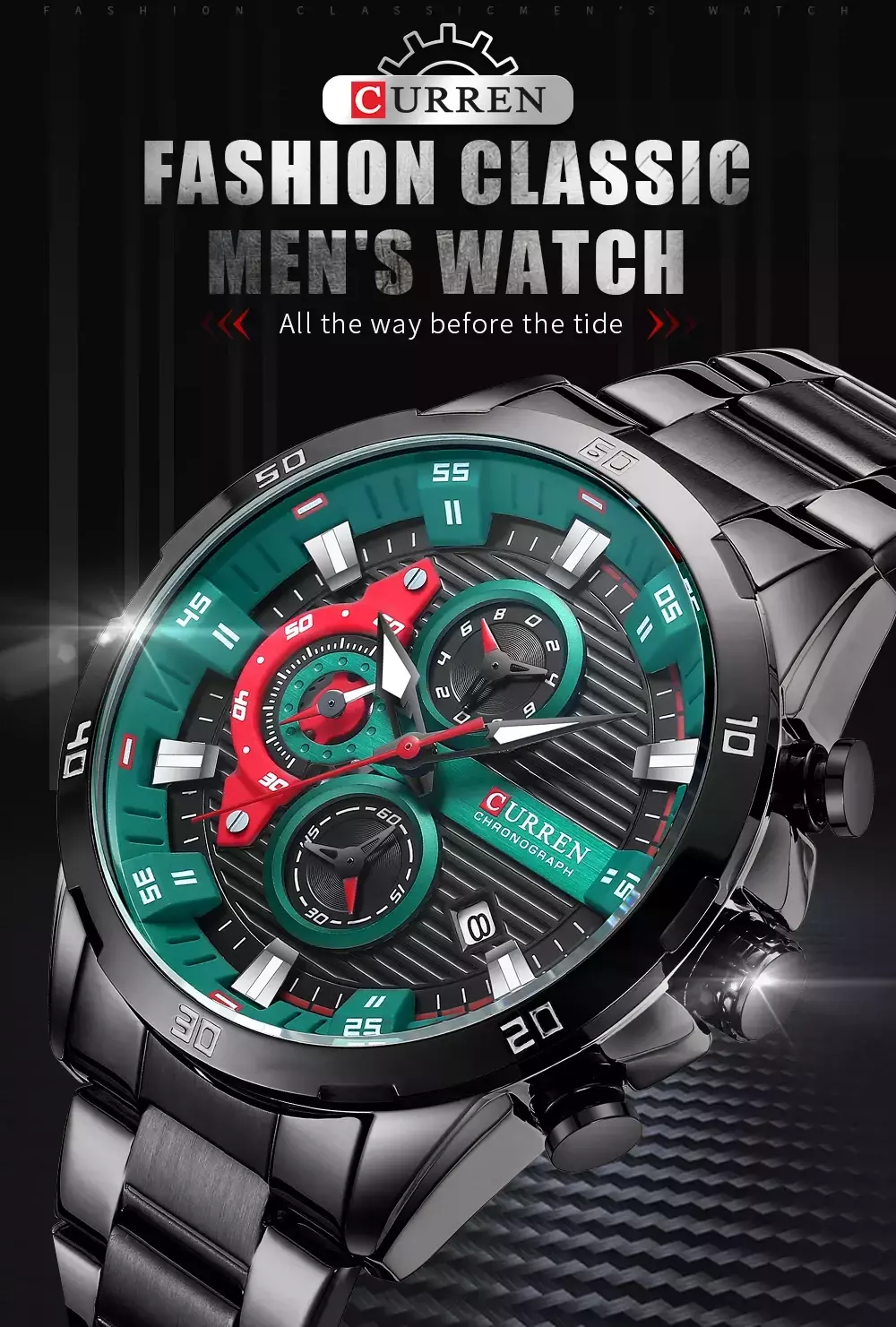 CURREN Relógios de aço inoxidável para homens, mostrador luminoso de moda criativa com cronógrafo, relógios de pulso casuais masculinos.